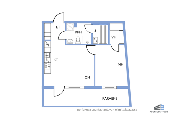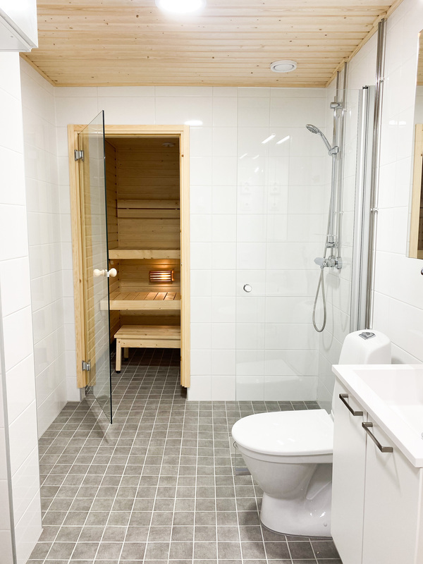 Asunnon pohjaratkaisu on suunniteltu huolella: tilava eteinen toivottaa tulijat tervetulleiksi, ja säilytystilaa löytyy käytännöllisestä liukuovikaapistosta. Heti sisäänkäynnin yhteydessä sijaitsee siisti kylpyhuone, jonka yhteydessä on oma sauna – täydellinen rentoutumiseen pitkän päivän päätteeksi. Kylpyhuoneessa on myös tilaa pyykkihuollolle.