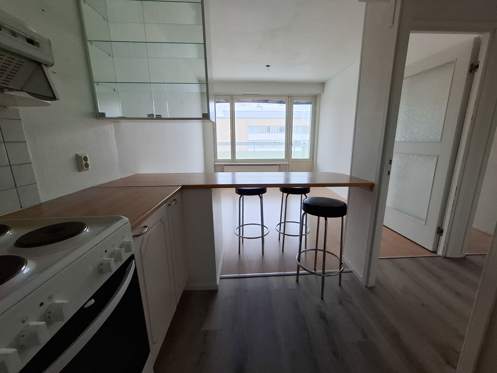 Hissillisen talon siisti huoneisto lasitetulla parvekkeella vapaana uusille vuokralaisille. Keittiön kalusteisiin kuuluu jääkaappipakastin, sähköliesi/uuni ja liesituuletin. Keittiöstä on ihastuttava saareke olohuoneeseen. Lattiat ovat laminaattia ja seinät maalattu. Kokonaan laatoitettu kylpyhuone on remontoitu moderniksi ja siinä on myös liitäntä pyykinpesukoneelle. Lisätilaa tavaroille löytyy eteisessä olevasta vaatehuoneesta.