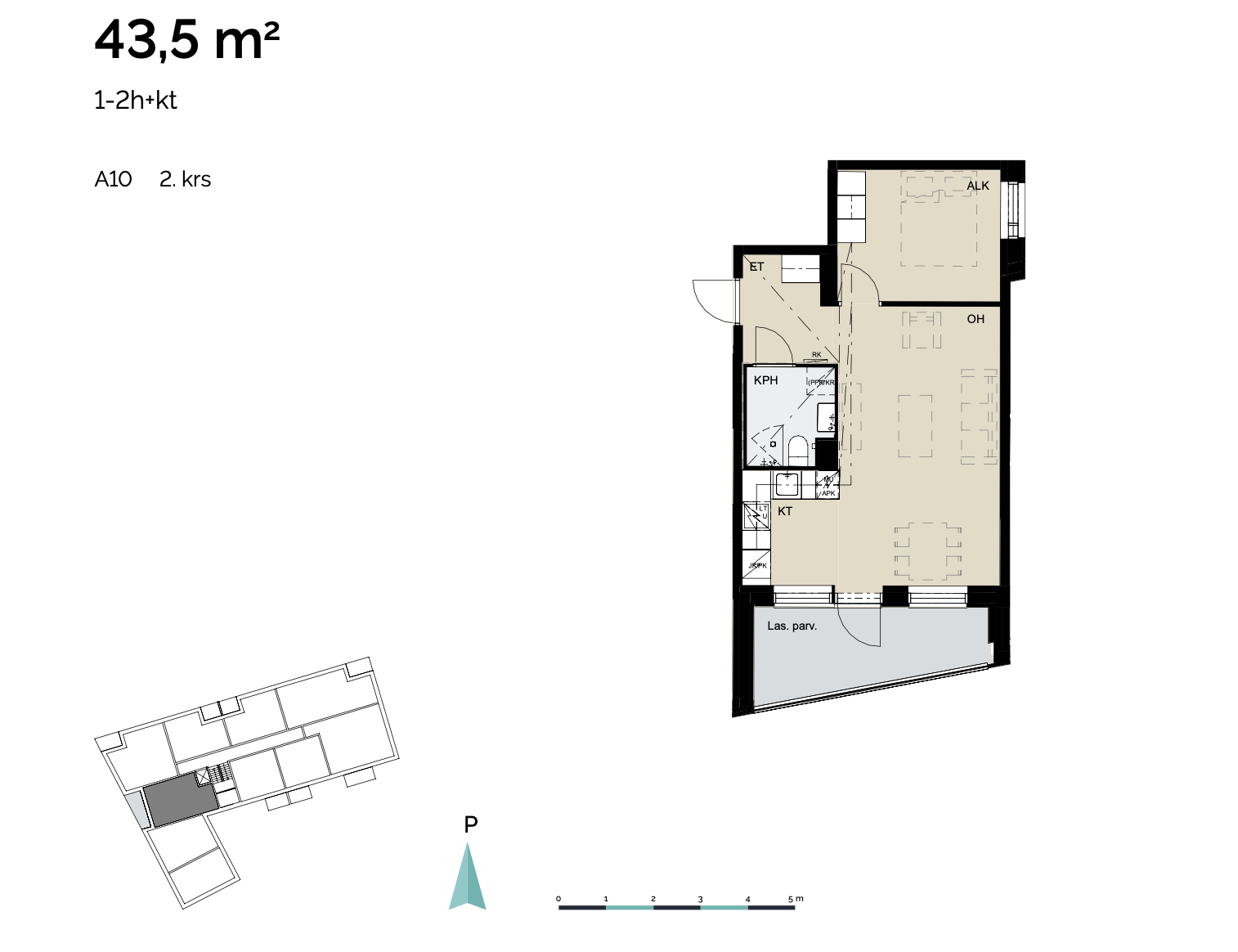 Kokonaispinta-ala 43.5m2